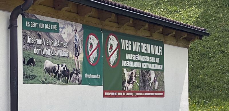 Durch Wolfs-Transparente „verschandelte" Bauernhöfe und großflächige Plakate von „Weidezone Tirol, Alm ohne Wolf oder wie das Ganze heißt" erregen das Gemüt von Landtagsabgeordnetem Alexander Gamper, Landwirtschaftssprecher der FPÖ.