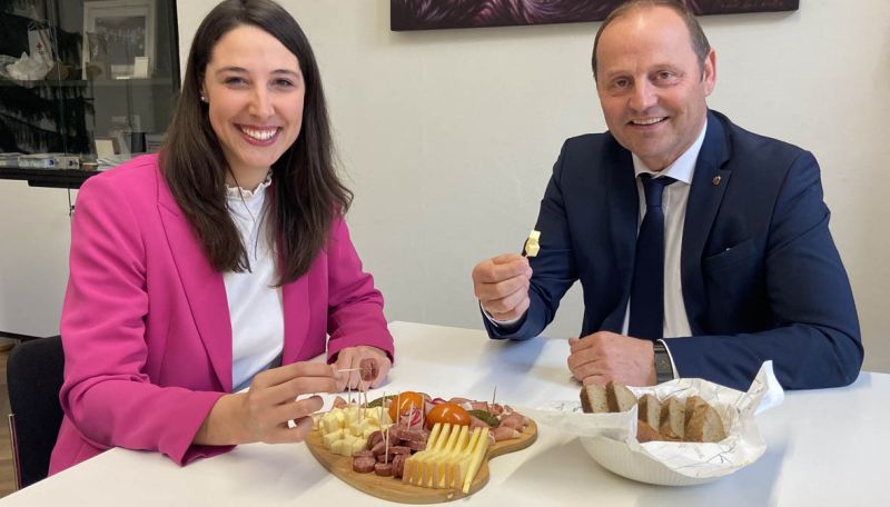 Bauernbundobmann LHStv. Josef Geisler und Junge ÖVP-Obfrau Landtagsvizepräsidentin Sophia Kircher appellieren, Osterkörbe mit heimischen Produkten zu füllen.