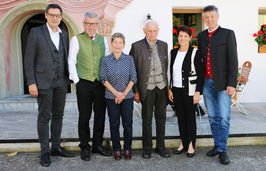 Foto: Bauernbunddirektor Peter Raggl gratulierte mit Anton Steixner, Helga Brunschmid und Josef Lanzinger dem ehemaligen Funktionär und Ehrenmitglied Paul Landmann zu seinem 90. Geburtstag. Auf dem Bild zu sehen ist er gemeinsam mit seiner Frau Anni. (TBB)