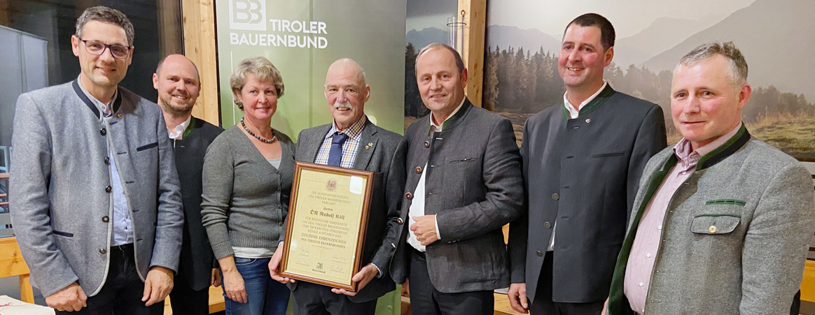 „Mein aufrichtiger Dank gilt Rudolf Köll, der durch seinen jahrzehntelangen Einsatz um die Landwirtschaft im Bezirk und über die Bezirksgrenzen hinaus maßgeblich dazu beigetragen hat, dass die Rahmenbedingungen für heimische Bauernfamilien passen. Besonders viel Herzblut hat Rudolf stets in die Waldwirtschaft gesteckt. Sein ehrenamtlicher Einsatz war stets vorbildlich. Lieber Rudolf, vielen Dank für deinen Einsatz und viel Glück, Gesundheit und Freude auch in Zukunft", so Bauernbundobmann LHStv. Josef Geisler. Auch Bezirksbauernobmann ÖR Elmar Monz aus Landeck ließ es sich nicht nehmen, seinem langjährigen Kollegen seine Glückwünsche zum Ausdruck zu bringen. „Ich bin oft mit dir vom Oberland aus nach Innsbruck gefahren und du hast trotz der vielen Herausforderungen immer versucht, das Beste für die heimische Bauernschaft zu erkämpfen. Dein Motto war immer: Aufgeben tut man nur Briefe", so Monz.