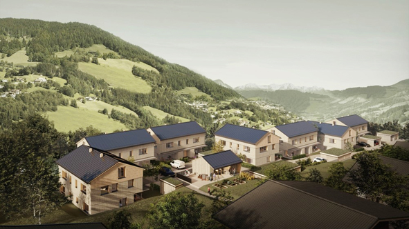 In der Gemeinde Wildschönau entstehen auf einem Grundstück des Tiroler Bodenfonds 14 wohnbaugeförderte Doppelhaushälften. (Foto: Unisono Architekten)
