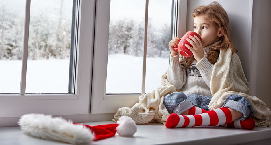Den ganzen Abend schaut das Mädchen aus dem Fenster auf der Suche nach dem Christkind.