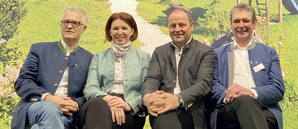 Urlaub am Bauernhof präsentierte sich (v. l.): Hans Embacher (GF), Michaela Langer-Weninger (Agrarlandesrätin OÖ), Bauernbundobmann LHStv. Josef Geisler und UaB-Bundesobmann Johann Hörtnagl. (Fotos: TBB)