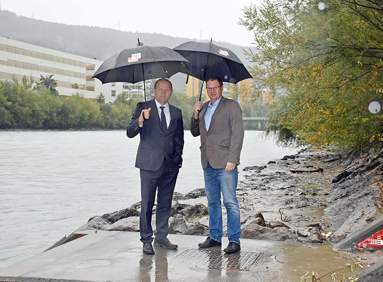 Josef Geisler und Klaus Niedertscheider, Leiter des Sachgebiets Hydrographie und Hydrologie beim Land Tirol, sehen derzeit keine drohende Wasserknappheit. (Foto: Land Tirol)