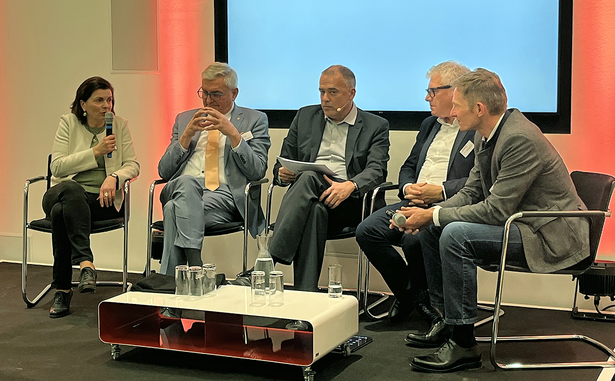 Im abschließenden Kommunaltalk mit den Spitzen der Gemeindeverbände aus dem Alpenraum wurden unter anderem der Wunsch nach beschleunigten Behördenverfahren bei Klimaschutzmaßnahmen sowie Siedlungsentwicklung und Nachverdichtung thematisiert.