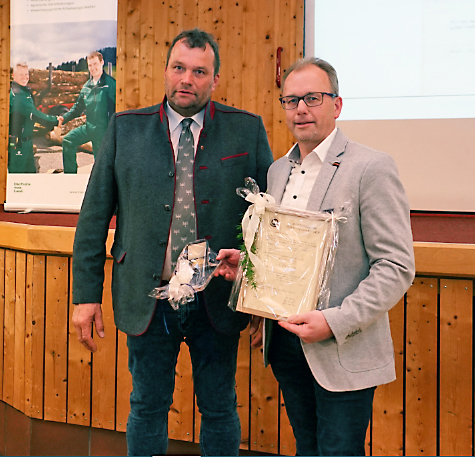 Ein weiteres Dankeschön bildete den stimmungsvollen Abschluss der Generalversammlung: Martin Mayerl – 30 Jahre lang als Geschäftsführer untrennbar mit dem Maschinenring Osttirol verbunden – wurde für seine langjährige, verdienstvolle Tätigkeit mit einer ganz besonderen Urkunde ausgezeichnet – seinem ersten Dienstvertrag.