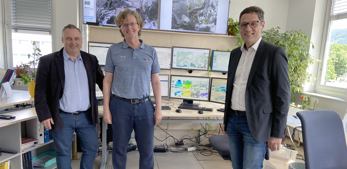 Es ist eine Erfolgsgeschichte, die seit knapp zwei Jahrzehnten durch eine Kooperation des Bauernbundes, der Tiroler Versicherung und der GeoSphere Austria (ehemals ZAMG) in Innsbruck geschrieben wird. Vergangene Woche trafen sich Bauernbunddirektor Dr. Peter Raggl, Dr. Manfred Bauer, Meteorologe und Leiter der Regionalstelle der GeoSphere Austria in Innsbruck, und Martin Reiter von der Tiroler Versicherung zum Austausch.