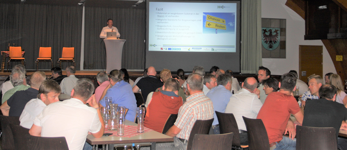 „Vor allem im Bereich Langkampfen kann, aufgrund der hohen Betriebsdichte und der konventionell dominierten Landwirtschaft, eine Biogasanlage als wirtschaftlich und ökologisch sinnvoll eingestuft werden", erläutert Frank Holczik, Geschäftsführer des Ingenieurbüros H-CON. Die Voraussetzung dafür sei, dass das erzeugte Biogas zu Biomethan aufbereitet und in das öffentliche Gasnetz eingespeist werde. Das Energiepotenzial beträgt hierbei bis zu 10.000 MWh pro Jahr, das entspricht dem Gasverbrauch von rund 430 Einfamilienhäusern. Neben der Energieerzeugung stellt die Biogasgülle auch eine verbesserte Düngewirkung und geringere Geruchsbelastung dar, was vor allem für den landwirtschaftlichen Sektor Vorteile bringt. Ökologische Vorteile ergeben sich durch die geringeren Methanemissionen der Gülle durch die Vergärung in der Biogasanlage.