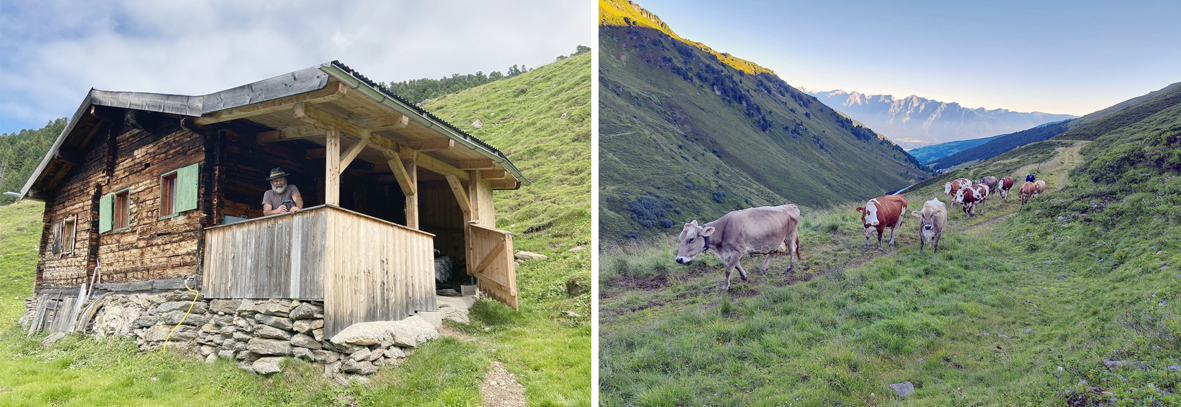 Hans Hirschhubers Sommerrefugium: Seine Hütte auf der Nafingalm. (Foto: Prugger) | Die Kühe auf dem Weg zur Hochalm. (Foto: Agrargemeinschaft Nafingalm)