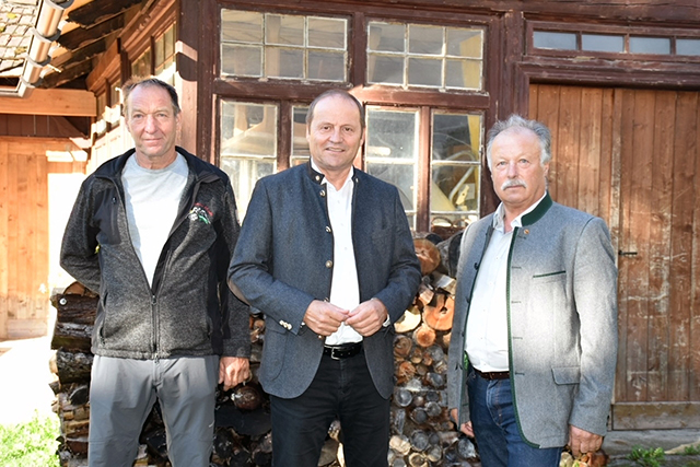 LH-Stv. Josef Geisler mit den Almverantwortlichen Robert Hueber von der Spisser Schafberg Alm und Alfons Falch von der Verwall Alm. (Foto: Land Tirol)