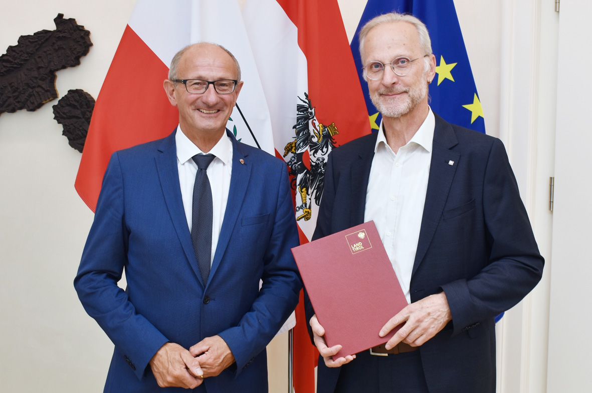 Foto oben: LH Anton Mattle und DI Alois Poppeller (Land Tirol) | Foto rechts: Dr. Willi Mayr (Privat)