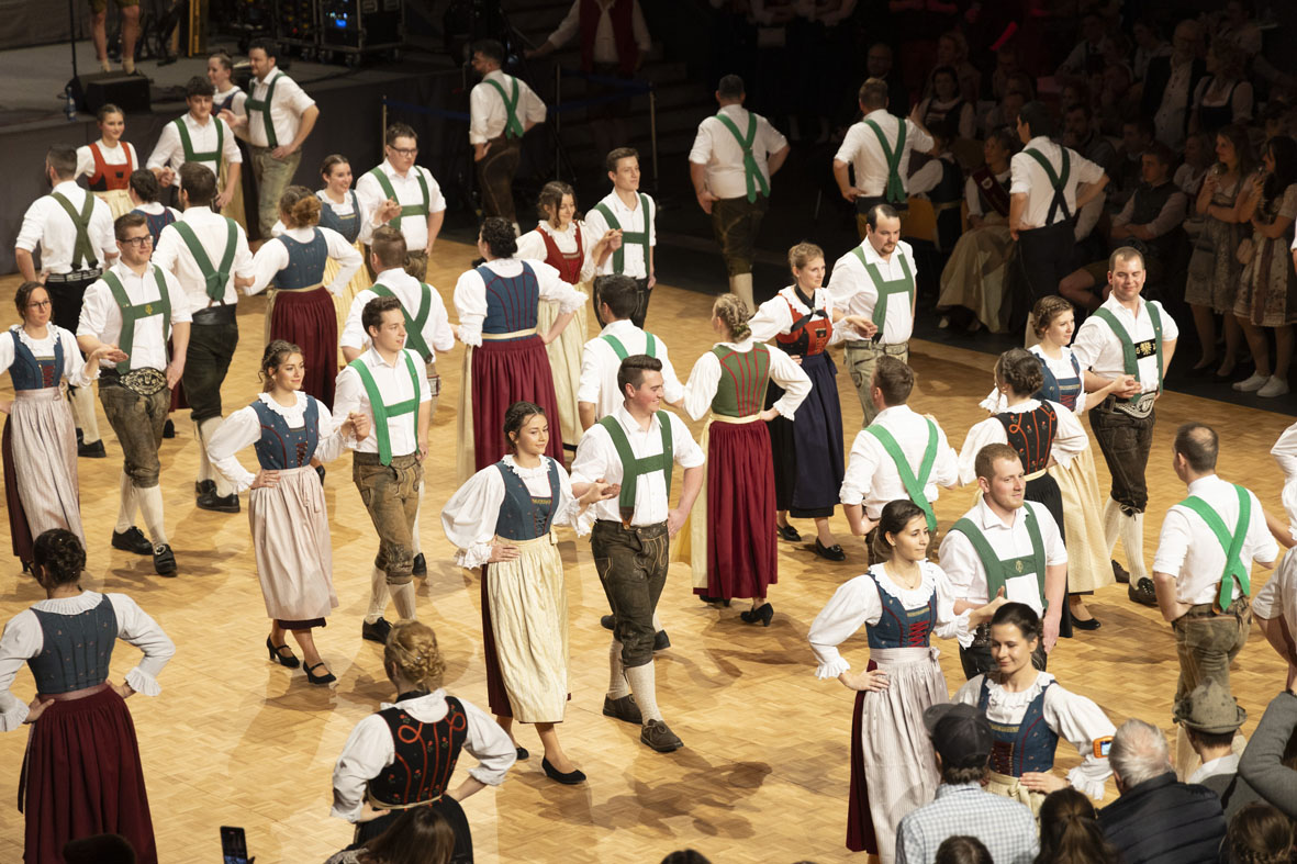 Schon bei der traditionellen Eröffnung mit dem Auftanz durch 30 Paare der Jungbauernschaft/Landjugend des Bezirkes Landeck war die Dogana bis auf den letzten Stehplatz gefüllt. Neun Musikgruppen sorgten für Stimmung beim Traditionsereignis.