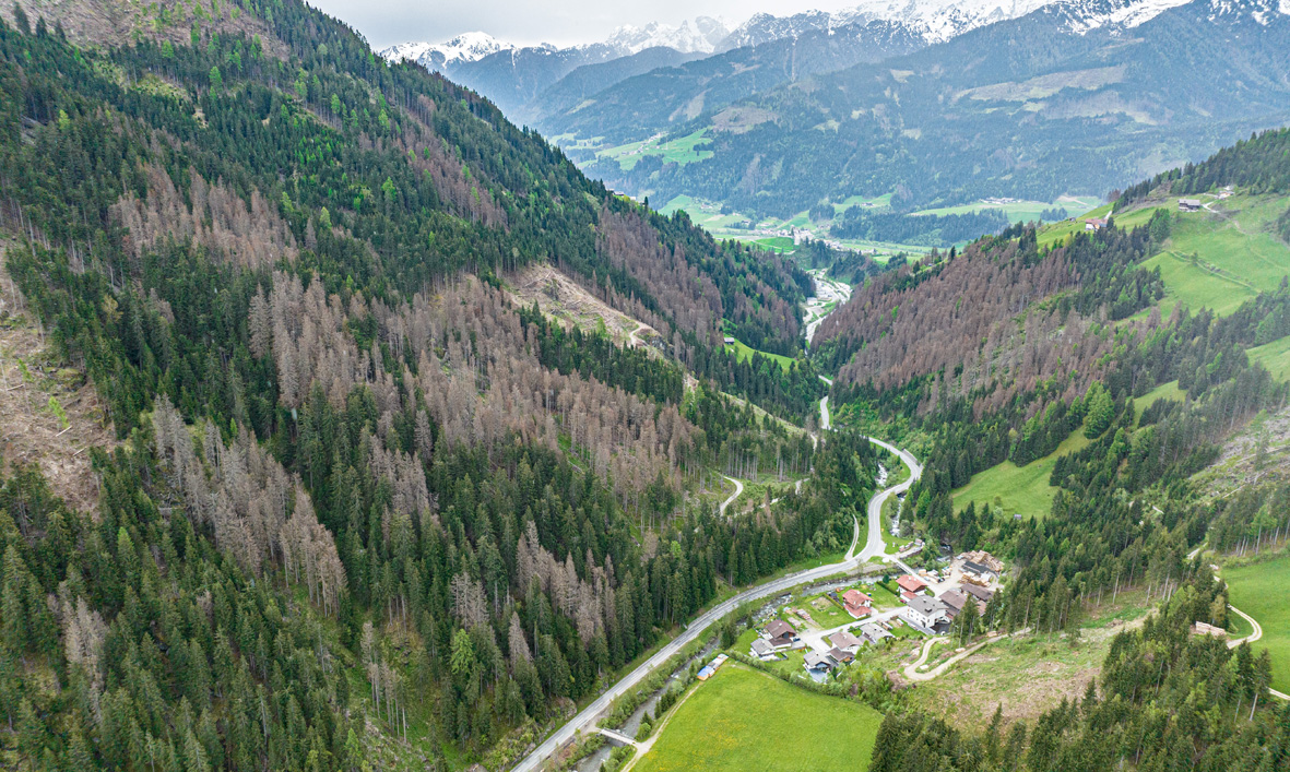 Sichtbare Schäden durch Borkenkäferbefall im Villgratental. (Fotos: Land Tirol)