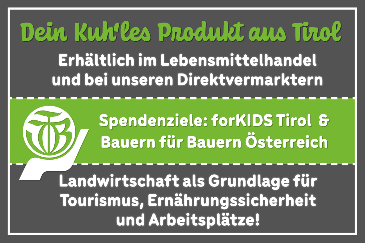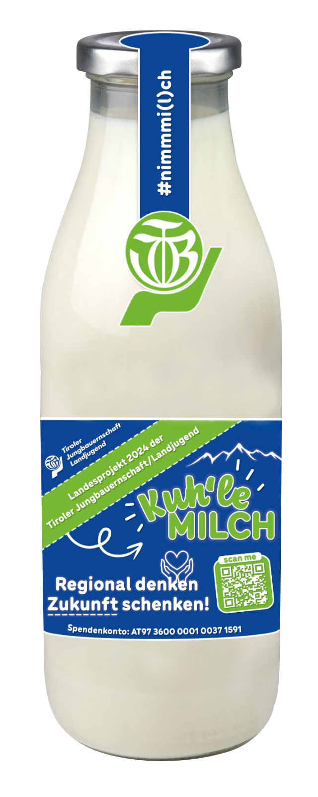 Parallel dazu erstrahlen die Glasflaschen der Tirol Milch in ganz Österreich in einem speziellen Design der Tiroler Jungbauernschaft/Landjugend. Jede dieser Milchflaschen trägt einen QR-Code, der es ermöglicht, direkt für wohltätige Zwecke zu spenden. Wer keine Möglichkeit hat, über den Code zu spenden, für den ist auch ein IBAN des TJB/LJ-Spendenkontos hinterlegt. Die gesammelten Spenden fließen in zwei Projekte: „forKIDSTirol", das sich für benachteiligte Kinder in der Region einsetzt, und „Bauern für Bauern Österreich", eine Initiative zur Unterstützung von landwirtschaftlichen Familien in Not.