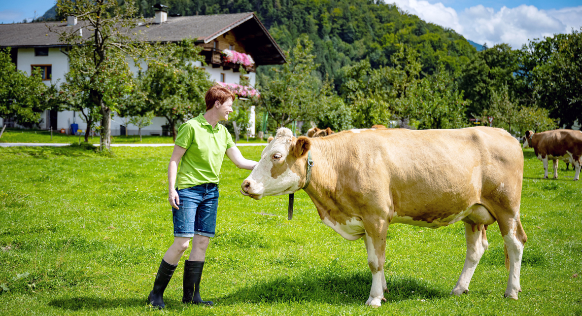 Wir haben seit einigen Jahren die Jungviehaufzucht ausgelagert. Zuvor brachten wir unser Jungvieh auf die „Ellmauer Wirtsalm" in Jochberg. Mittlerweile wechseln unsere Kälber im Alter von drei Monaten auf den Betrieb meines Bruders. Kurz vor der Abkalbung kommen die Tiere dann wieder auf unseren Betrieb zurück. Wir hatten nie eine eigene Alm. Wenn mir Bäuerinnen und Bauern von ihren Almsommern erzählen oder wir einen Sonntag bei Freunden auf der Alm verbringen, hätte man schon gerne selbst manchmal eine Alm. Im Bewusstsein, wie viel Verantwortung und Arbeit damit verbunden ist, bewundere ich all jene, die Familie, Heimbetrieb und Alm mit Freude unter einen Hut bringen.