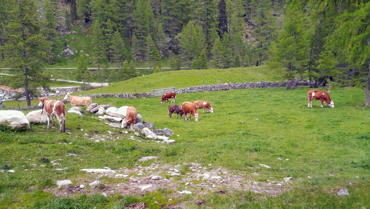 Da Georg Senfter viele der Tiere schon kennt – ein paar sind auch von seinem eigenen Hof in St. Jakob in Defereggen dabei, den inzwischen sein Sohn führt – weiß er auch, welche Rinder sich gut vertragen. Jedenfalls hat sich seine Methode bewährt und die Almbauern sind begeistert. Das habe ich erfahren, als mich im letzten Jahr ein liebes Mail von Erika Pallhuber aus der Südtiroler Gemeinde Rasen-Antholz östlich von Bruneck erreichte:
