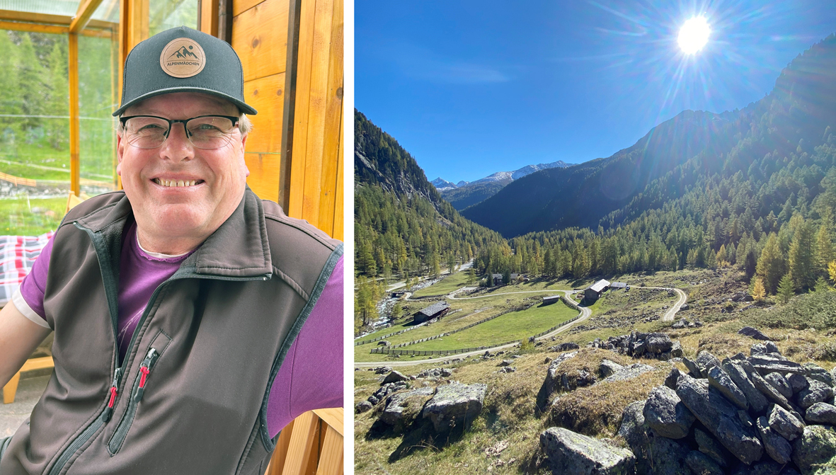 Der bewährte Hirte Georg Senfter freut sich auf den Almsommer. | Blick auf die Hütten und Teile des Weidegebietes der Patscher Alm.