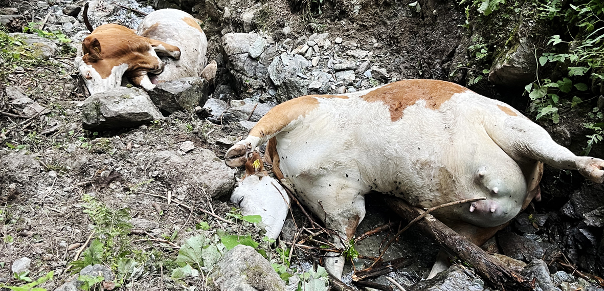 „Es ist noch zu früh, um die Almsaison abzubrechen, aber ein Weiter wie bisher ist auch nicht möglich", erklärt Rinderbauer Christoph Pirnbacher, nachdem drei seiner trächtigen Kühe bei einem Wolfsangriff getötet wurden. (Foto: Pirnbacher)