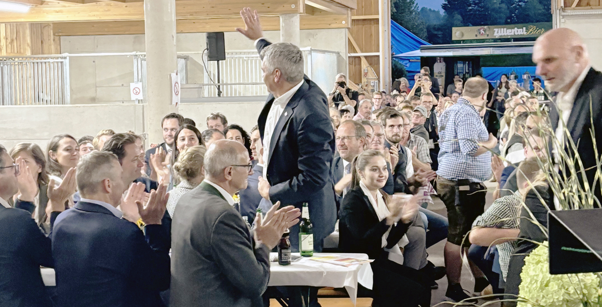 Landwirtschaftsminister Norbert Totschnig brachte die Wichtigkeit starker bäuerlicher Interessensvertreter auf allen politischen Ebenen zur Sprache. In diesem Zusammenhang lobte er auch den Einsatz von Bundeskanzler Karl Nehammer für die heimische Landwirtschaft: „Karl Nehammer hat ein offenes Ohr für die Anliegen der heimischen Bauernfamilien und steht für eine produzierende flächendeckende Landwirtschaft in Österreich ein. Dabei findet auch die Berglandwirtschaft, beispielsweise in der Ausgestaltung der GAP (Gemeinsame Agrarpolitik) besondere Berücksichtigung, um eine Chancengerechtigkeit für das Berggebiet zu schaffen", so Totschnig. „Mein Ziel ist es, dass wir auch in 20 Jahren noch eine wettbewerbsfähige, nachhaltige und aktive Land- und Forstwirtschaft in einem vitalen, ländlichen Raum haben. Dazu brauchen die Bäuerinnen und Bauern verlässliche Unterstützung und müssen auch in der kommenden Bundesregierung vertreten sein. Die Volkspartei ist die Partei der Mitte und die einzige Partei, die sich konsequent für die Bevölkerung im Land einsetzt. Wir setzen auf Anreize anstatt Verbote, wir stehen für Leistung und ein klares Bekenntnis zur heimischen Land- und Forstwirtschaft", so Norbert Totschnig zu den anwesenden Bäuerinnen und Bauern. Er betonte den Stellenwert einer starken bäuerlichen Interessensvertretung auf allen Ebenen: „Das kann uns nur gelingen, wenn wir zusammenhalten."