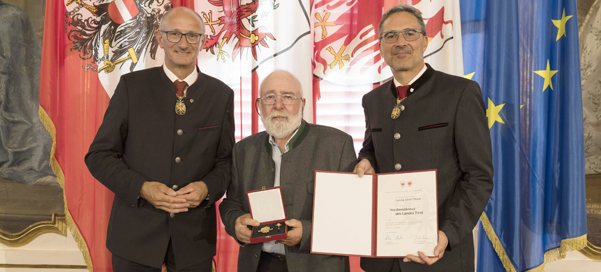 Ludwig Pfund (Mitte) bekam das Verdienstkreuz des Landes Tirol verliehen. (Foto: Land Tirol/Sedlak)