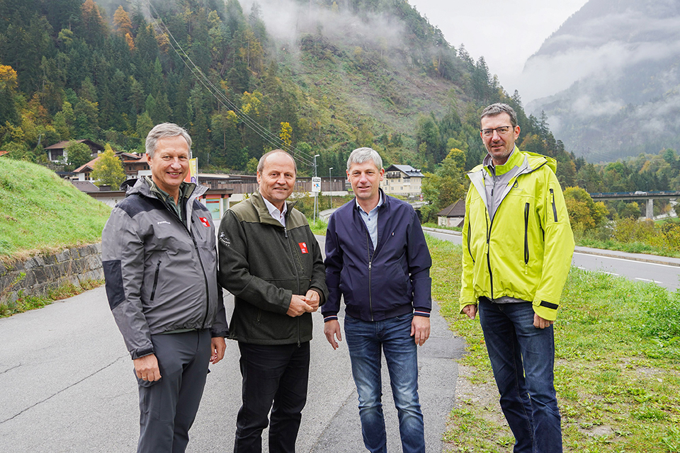 Im Rahmen der Woche des Schutzwaldes beim Lokalaugenschein in Oetz (v. l.): Landesforstdirektor Josef Fuchs, LH-Stv. Josef Geisler, Bürgermeister Hansjörg Falkner und Gebhard Walter (WLV).