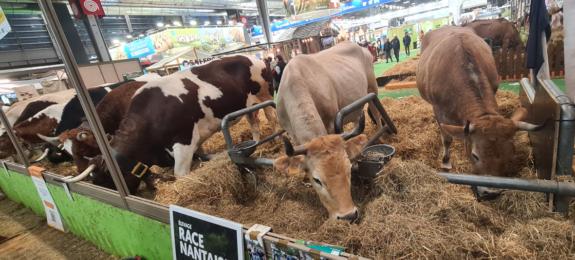 Im Viehbereich der Messe zeigte die Agrarnation Frankreich, was sie tierzüchterisch zu bieten hat. Mehr als 4.000 Rinder, Pferde, Esel, Schafe, Ziegen, Schweine, Kaninchen, ja sogar Katzen und Hunde waren zu sehen und zeigten in sechs Vorführringen ihr genetisches Potenzial. Auch Exoten wie Watusis, Dromedare, Lamas und Alpakas waren vertreten. Ein Melkstand und ein Schaubauernhof zeigten anschaulich die praktischen Seiten der Viehhaltung. Selbst erfahrene Tierzüchter wurden auf der Messe mit Rassen konfrontiert, von denen in unseren Breiten kaum jemand zuvor gehört hatte, wie Tarentaise, Bazadaise oder Abondance. Den Stellenwert der Rinderzucht in Frankreich zeigt die Tatsache, dass jeweils eine Kuh das offizielle Maskottchen der Agrarmesse ist – dieses Jahr die sechsjährige Limousinkuh „Oupette".