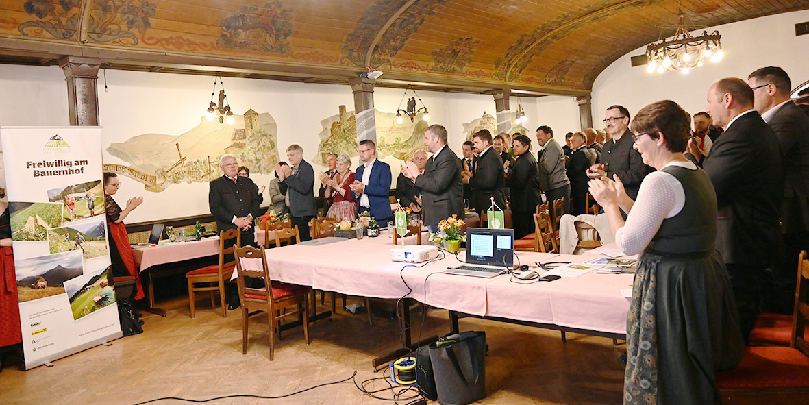 Die wohl persönlichsten, eindrucksvollsten Dankesworte kamen jedoch aus den MR-Tirol-Reihen: Angelika Spildenner (langjährige Mitarbeiterin bzw. Mitarbeiterin MR-Service Tirol der ersten Stunde), Obmann Hans Gumpitsch (MR Osttirol) und Gahrs Geschäftsführer-Kollege Hannes Ziegler erzählten über persönliche Begegnungen, fruchtbringende Zusammenarbeit, gemeinsame Erlebnisse und persönliche Freundschaften. Ein spontanes Dankeschön der Südtiroler Maschinenringe und von Fritzens Bürgermeister Markus Freimüller bildeten den Abschluss der überaus stimmungsvollen Veranstaltung.