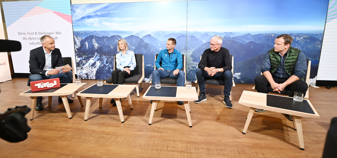 Neben der Tiroler Zugspitz Arena tritt auch die Lebensraum Tirol Gruppe mit ihren drei Tochterunternehmen – Agrarmarketing Tirol, Standortagentur Tirol und Tirol Werbung – als Gastgeber des AlpenKlimaGipfels auf. In drei Fachpanels diskutierten hochkarätige Experten aus Tourismus, Landwirtschaft und Wirtschaft über Anpassungsstrategien und daraus resultierenden Risiken und Chancen.