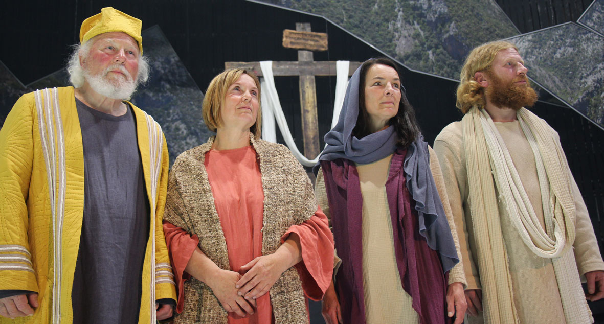 V. l. n. r.: Neben Alois Kronthaler, Silvia Schwaiger, Regina Eberwein und Michael Moser wirken zahlreiche Menschen aus dem bäuerlichen Bereich bei den Passionsspielen Erl mit.