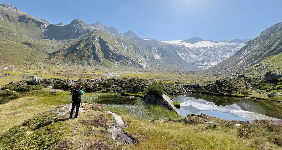 Das Zillertal ist eine der bekanntesten und beliebtesten Urlaubsdestinationen für Gäste aus Nah und Fern. Dass aber auch Schafe, Kühe und Pferde hier ihre Sommerfrische in einem Luxusresort in luftiger Höhe verbringen können, zeigt ein Besuch auf der Schwarzensteinalm im Zemmgrund deutlich. Das Angebot an Fläche und Futter ist gigantisch. Die Alm verfügt über stolze 491 Hektar Fläche, ergänzt durch rund 1.500 Hektar an Weiderechten. Hier tummeln sich etwa 500 Schafe, 26 Rinder und 15 Pferde auf weitläufigen Böden und angrenzenden Steilflächen, die direkt in mehrere Gletscher auslaufen. Die Aussicht und das Panorama sind atemberaubend – ob die Tiere diesen Anblick genauso zu schätzen wissen wie die Wanderer, ist fraglich.