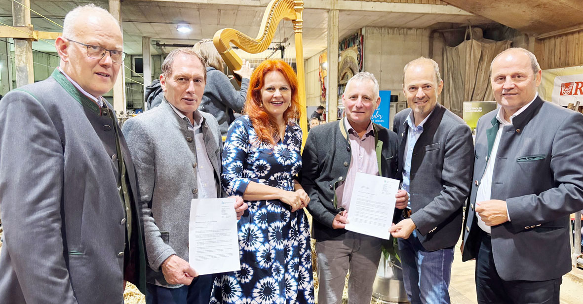 Überreichten eine Resolution zur Zukunft der Berglandwirtschaft (v. l.): Bezirksbauernobmann ÖR Ing. Thomas Schweigl, LKÖ-Präsident Josef Moosbrugger, LR Dr. Cornelia Hagele, Bezirksbauernobmann ÖR Elmar Monz, LK-Präsident NR Josef Hechenberger, Bauernbundobmann LH-Stv. Josef Geisler (Foto: TBB)