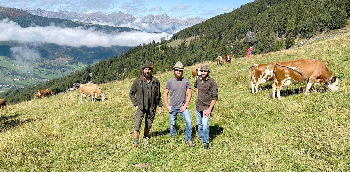 Acht Kranzkühe werden ausgezeichnet. Die beiden Grauvieh-Damen sind die beiden „Stoaßbroscht", die wehrhaftesten Kühe der Almsaison. (Fotos: BZ/Pixner, Familie Schrott)