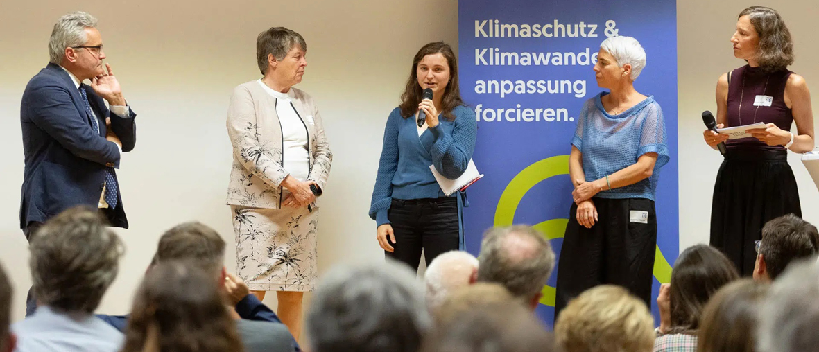 Die Teilnehmer der Podiumsdiskussion: Johannes Fankhauser – BMLUK, Brigitte Ederer – Staatsekretärin a. D. und Spitzenmanagerin, Katharina Schobersberger – Vizepräsidentin der CEJA Young Farmers, tbc, Katharina Cibulka – Künstlerin und Moderatorin Sophia Glanz – Netzwerk Zukunftsraum Land (Fotos: Rupert Asanger)