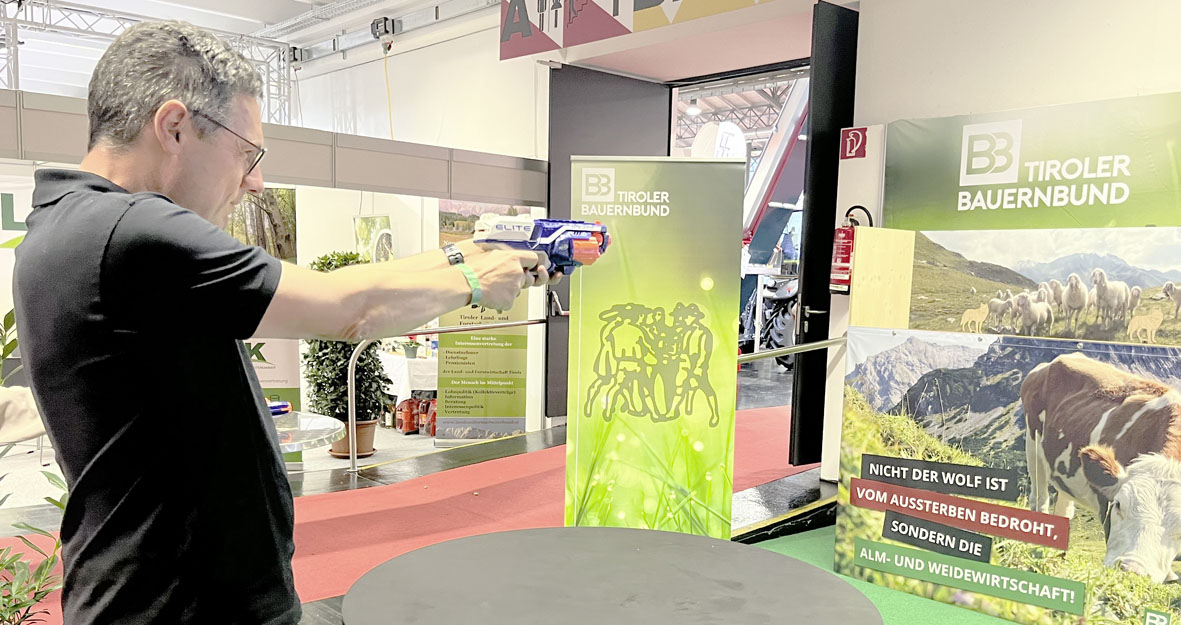Auch Direktor Peter Raggl versuchte sich am Wolfschießstand des Tiroler Bauernbundes.