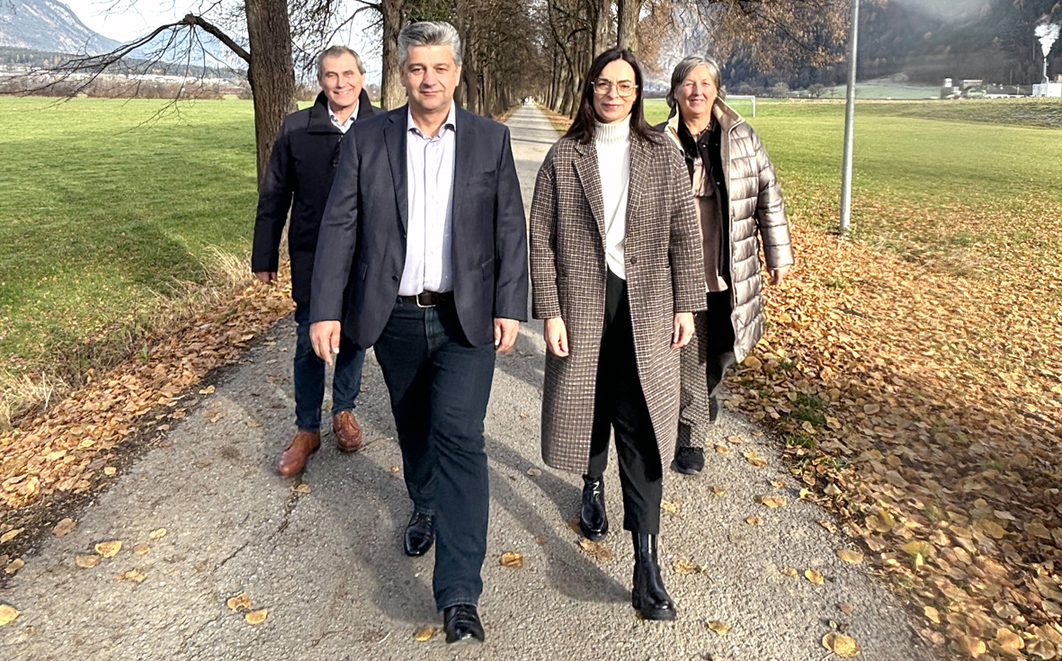 Mutig schreiten die neuen Führungspersonen Josef Stoll und Brigitte Hochmuth voran in die Zukunft, während sich Josef Norz und Maria Gschwentner in Richtung des wohlverdienten Ruhestandes bewegen. (Foto: LLA Rotholz)